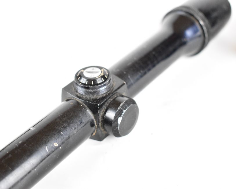 Eleven various air rifle or target rifle scopes and sights including NCStar 2-7x32 E, ASI De Luxe 4x40, Simmons 4x20, Diana 3x, Focal Point, Parker-Hale PH16D, FS22A etc