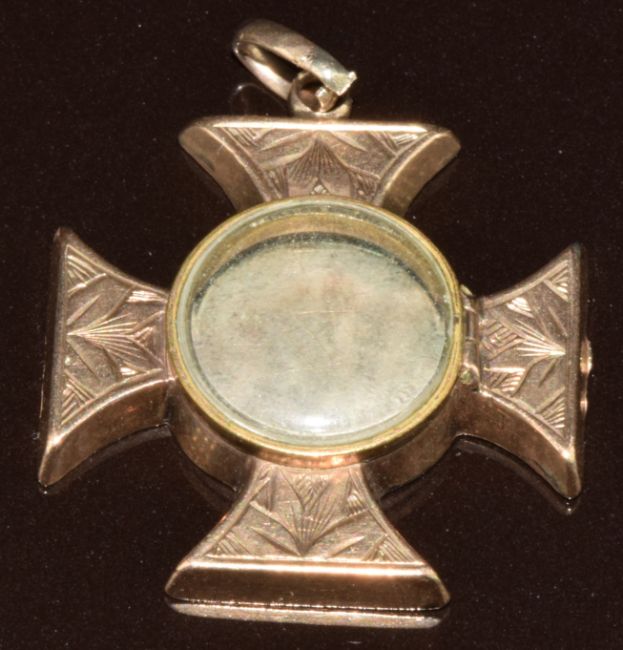 Victorian yellow metal locket in the form of the Maltese cross, 2.9g, 2.5cm