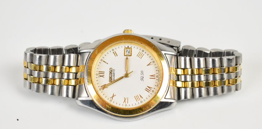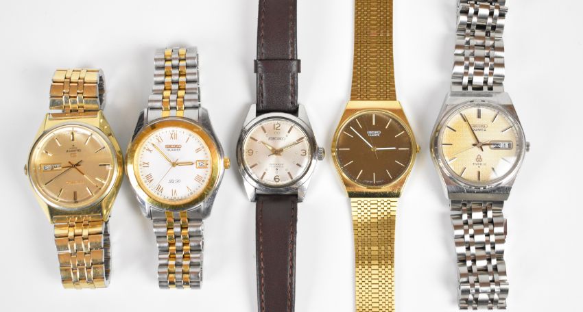 Five Seiko wristwatches Seiko Quartz 4004 ref. 0903-8109, Quartz Type II Ref. 7546-7000, SQ50 ref. 7N47-7A00, 66-7070 and 7810-8009, largest case diameter 37mm.
