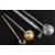 Silver bangle with applied gold decoration, 9ct gold stick pin (1.4g), agate stick pin in the form of a cap, banded agate stick pin and a cocktail stirrer in the form of a golf club