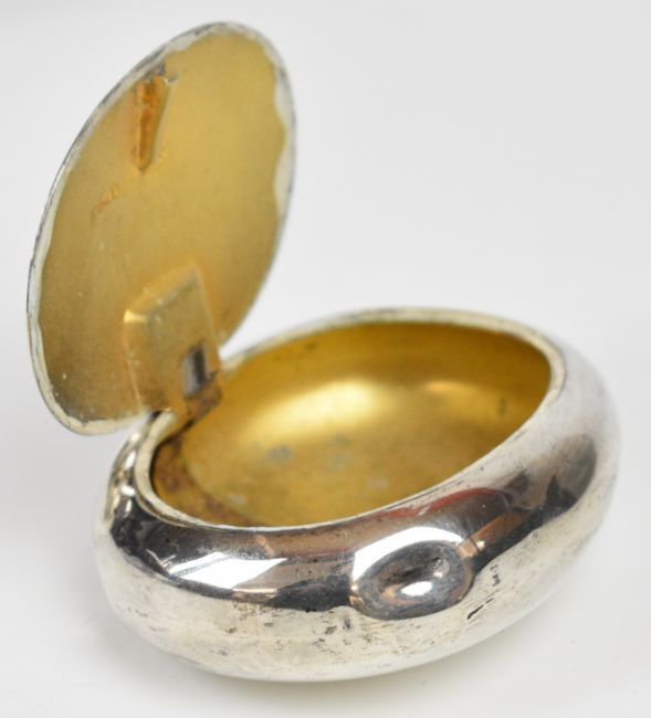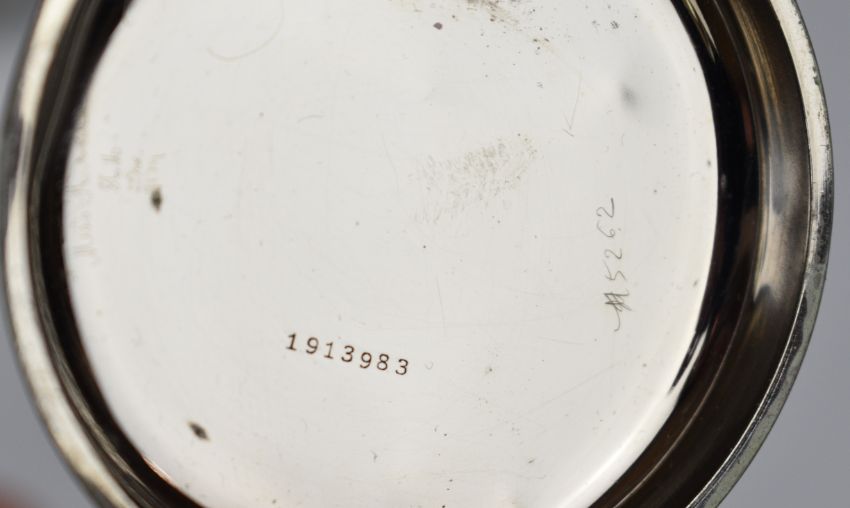 Victorian or Edward VII hallmarked silver Goliath or similar pocket watch holder, London 1901, maker William Comyns & Sons, height 13cm, with a Goliath or similar nickel cased pocket watch, the rear cover opening to reveal an exhibition style inner cover, together with an Edward VII hallmarked silver squeeze to open snuff box, Birmingham 1902, maker Hilliard & Thomason and a hallmarked silver cigarette case, weight of last two items 139g