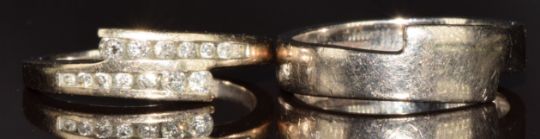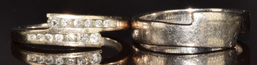 An 18ct gold ring set with diamonds, with matching 18ct gold band made to be worn with it, 8.8g, size L/M