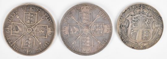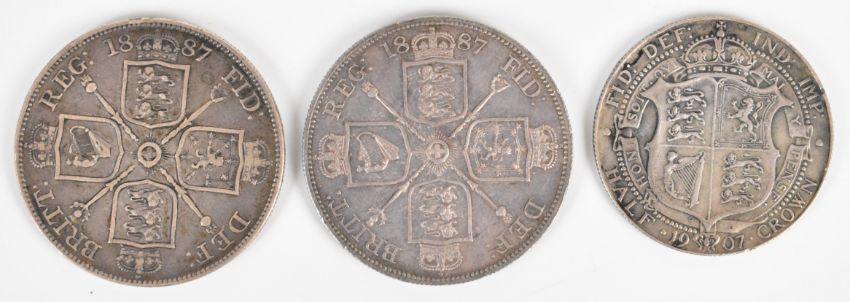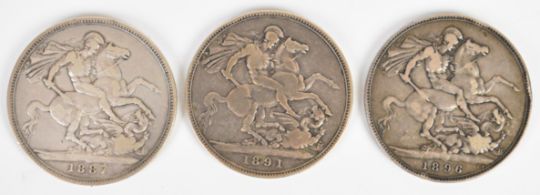 Victorian / Edwardian silver coinage comprising 1887, 1891, 1896 crowns, half crowns etc, 195g