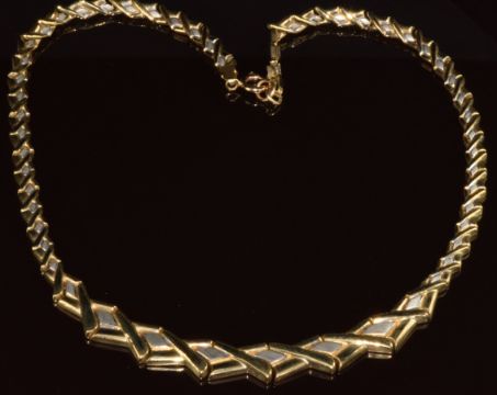 A 9ct gold bi-coloured necklace made up of fancy links, 12.6g, 40cm