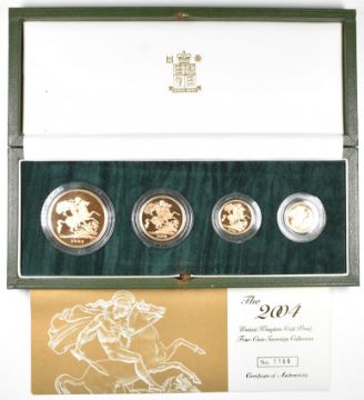 2004 Royal Mint limited edition 1166/2500 'UK Gold Proof Sovereign Four Coin Collection' comprising £5, £2, full sovereign and half sovereign, cased with certificate