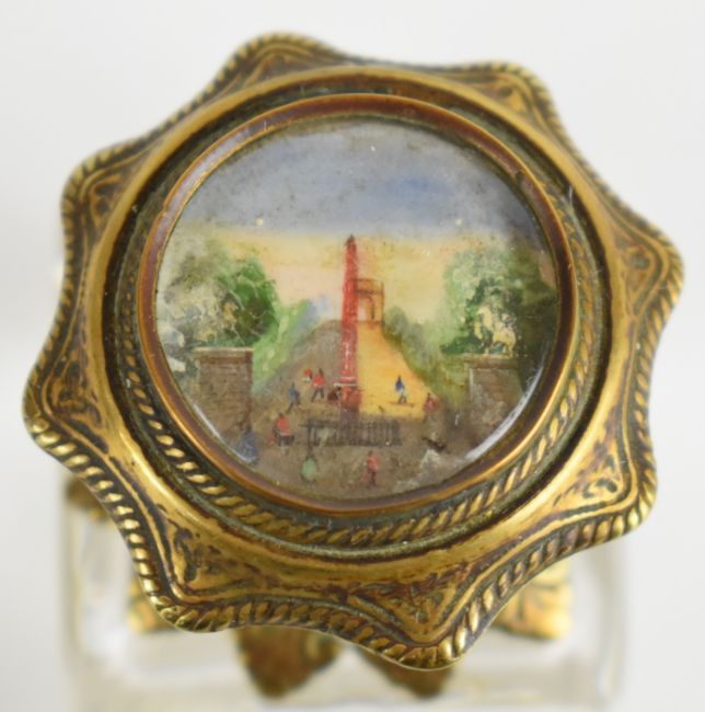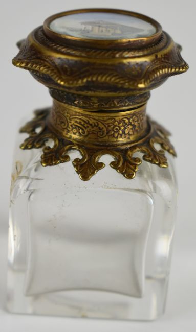 19th/20thC carved wood scent / perfume etui casket, the bottles with inset watercolours of classical buildings, W10 x H11cm