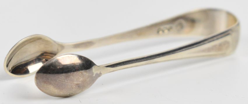 Elizabeth II hallmarked silver christening mug, Birmingham 1964, maker John Rose, height 7.5cm, cased hallmarked silver spoon and a pair of hallmarked silver sugar tongs, weight of all three items 116g