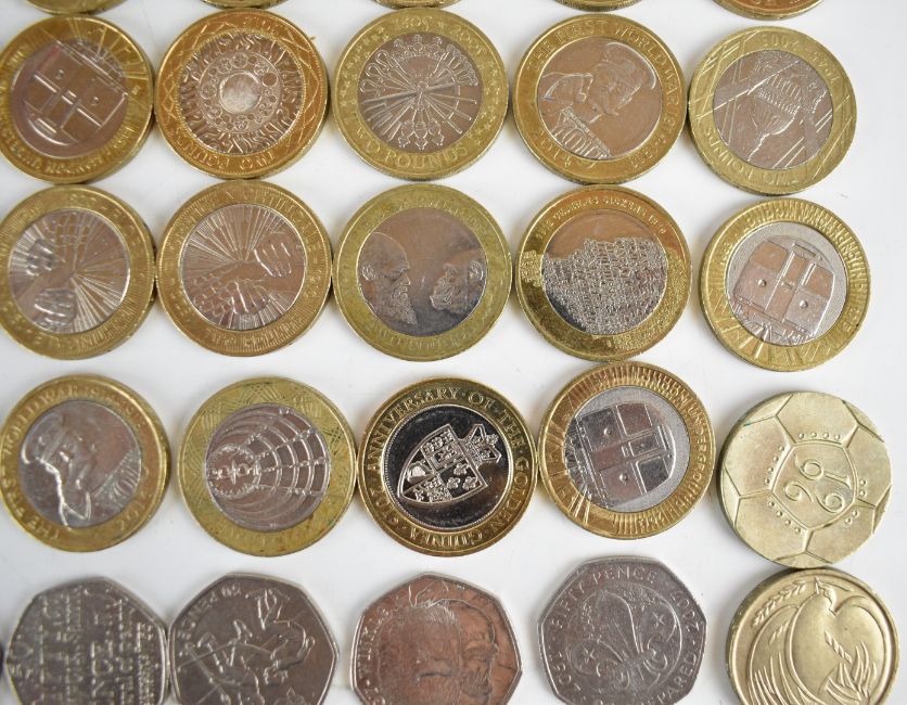 Collectable £2 and 50p coins, comprising forty four bi metal and two single metal £2 coins and eighteen 50p coins, various designs