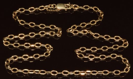 A 9ct gold curb link necklace made up of oval links, 21.7g, 58cm