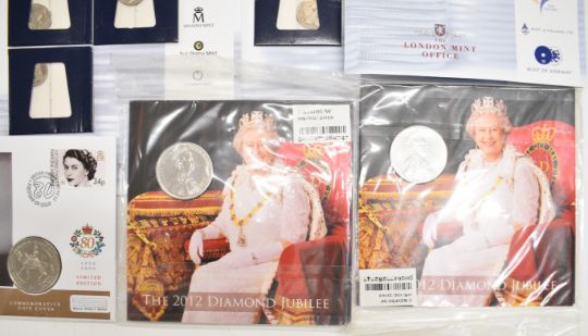Collection of cased and loose collectable coins including Britannia Pennies of the 20th Century, coin packs and coin stamp covers, USA 5 cent coins etc