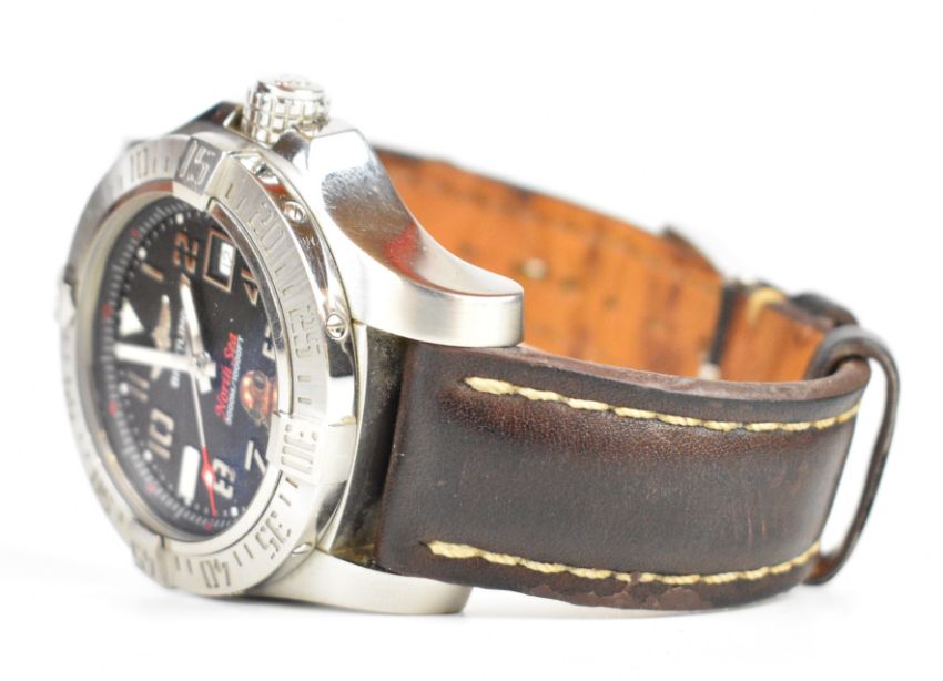 Breitling Avenger II Seawolf North Sea Diver gentleman's automatic wristwatch ref. A17331A/ BE98 with date aperture, luminous hands, steel Arabic numerals, black dial, stainless steel case and signed movement, on brown leather strap, case diameter 45mm, serial number 2937355, limited edition 015/040, in original leather case with box, outer card sleeve, unused rubber strap, bezel cover, international warrantee plaque and related paperwork.