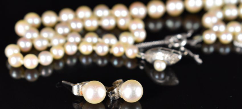 A single strand of cultured pearls with a silver clasp and a pair of 9ct white gold Ciro earrings set with pearls