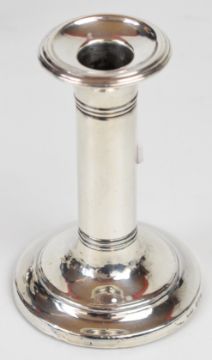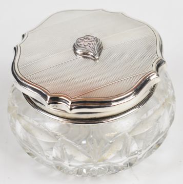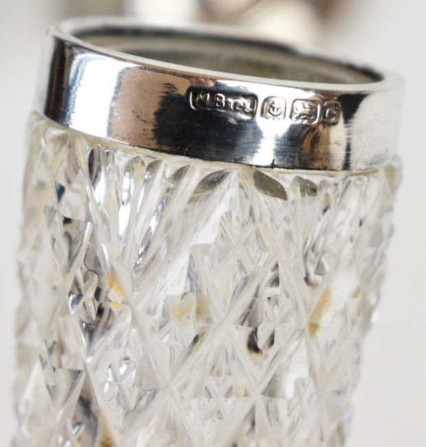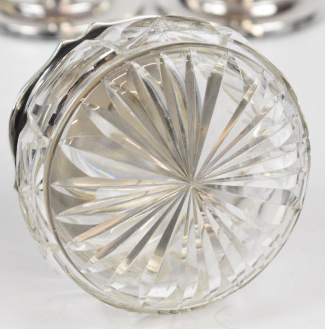Pair of Edward VII hallmarked silver candlesticks, Birmingham 1907, maker Ellis & Co, height 11cm, hallmarked silver lidded cut glass pot, weight of lid 41g and a hallmarked silver mounted cut glass vase
