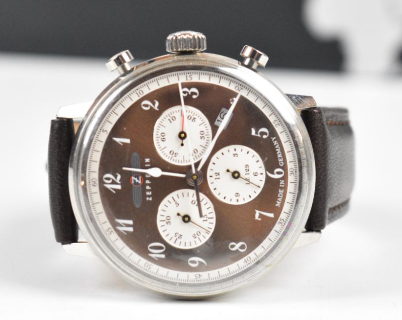 Four designer wristwatches comprising Zeppelin chronograph ref. 7086, Bering Ceramic ref. 11438-742, Skagen Ceramic and Accurist ref. MB323, all in original boxes.