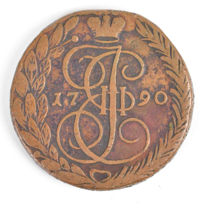 Russia Catherine The Great 1790 5 Kopeck coin and a Russian silver medal commemorating 100 years since the defeat of Napoleon, 20.3g