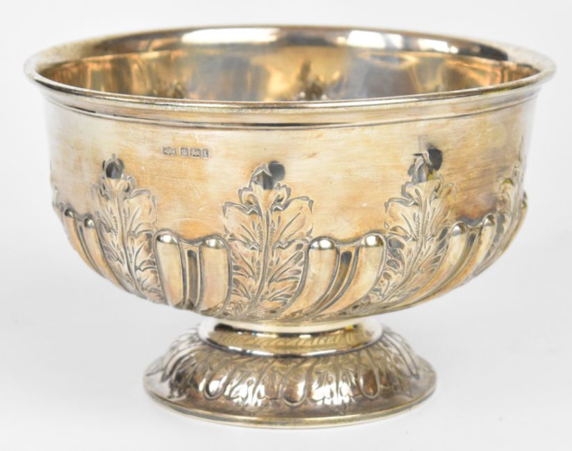 Mappin & Webb Edward VII hallmarked silver pedestal bowl with fluted and acanthus leaf decoration to the lower part of the body, Sheffield 1903, diameter 18.5cm, weight 450g