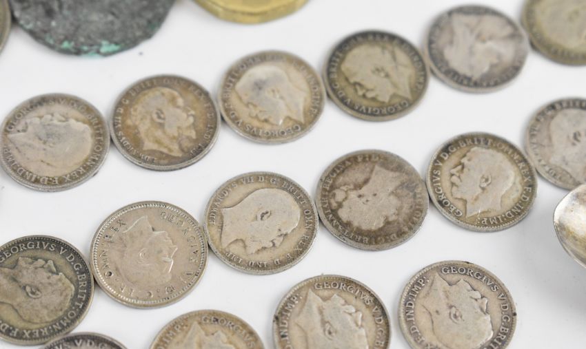 Approximately 105g of pre- 1947 and 29g pre-1920 British silver coinage together with a quantity of sundry coinage including Elizabeth II