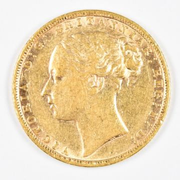 1874 Queen Victoria gold full sovereign with young head and George and the Dragon reverse, VF