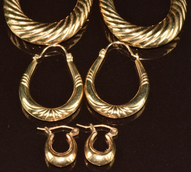 Three pairs of 9ct gold earrings, 5.2g
