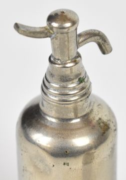 Novelty writing set formed as a soda syphon, the top sliding off to reveal an inkwell compartment and two part screw together pen, overall height when closed 10cm