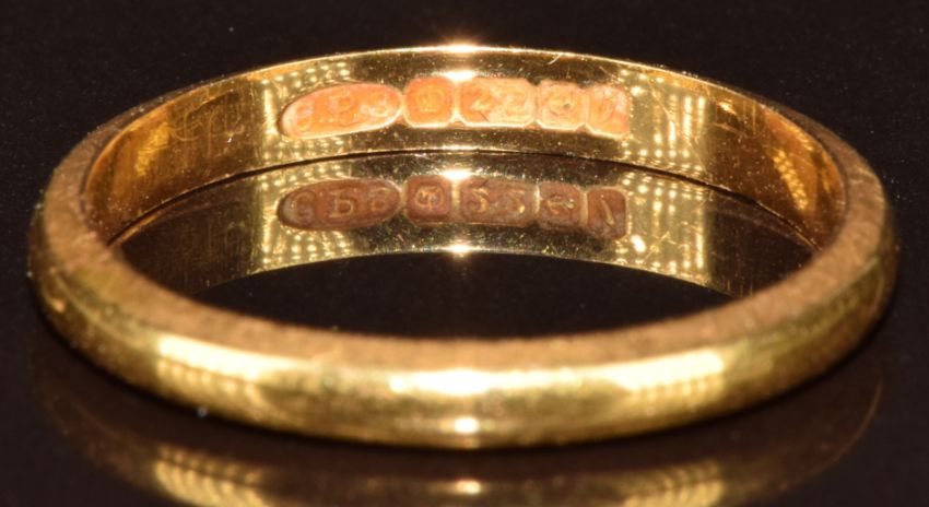 A 22ct gold wedding band / ring, 2.8g, size N