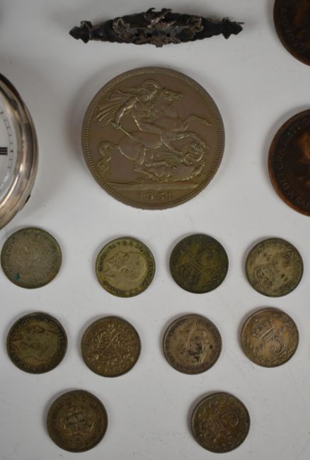 J.G.Graves Sheffield hallmarked silver cased keyless winding pocket watch, British silver coinage comprising approximately 33g of pre 1920 and approximately 29g of pre 1947, pair of hallmarked silver cufflinks, Victorian hallmarked silver brooch etc