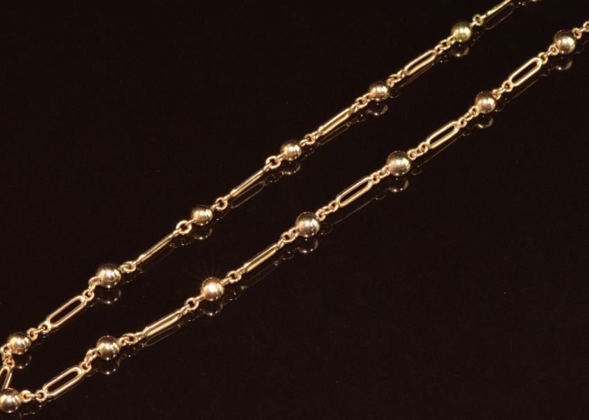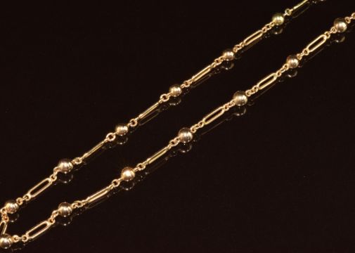 A 9ct gold necklace made up of spherical and elongated links, 13.3g, 66cm