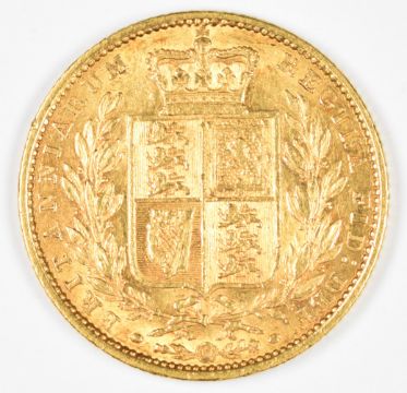 1848 Queen Victoria gold full sovereign with young head and shield reverse, G