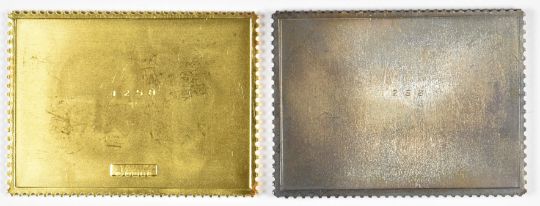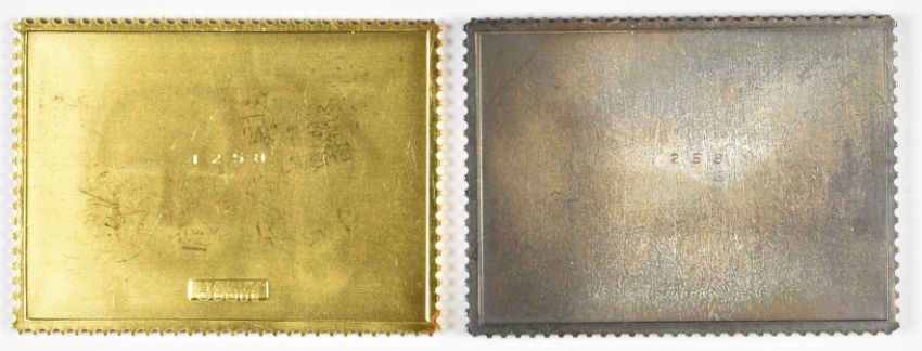 1972 Royal Wedding Anniversary hallmarked 22ct gold and silver limited edition (1258/3,000) stamp replica pair, each 26.4g, in original fitted case with certificate