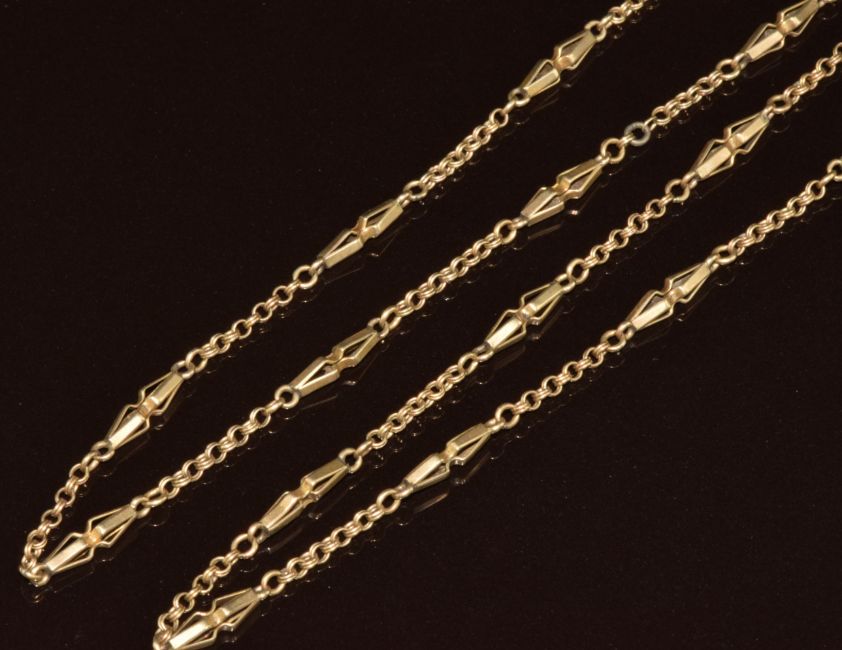 Two yellow metal chains, test as 7k gold, 10.3g