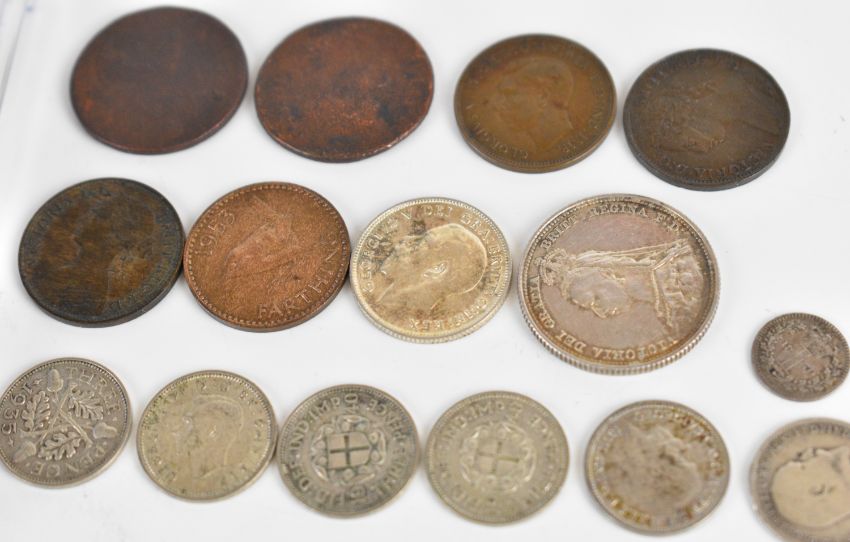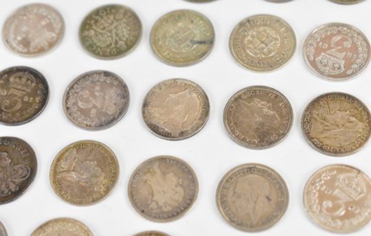 British silver coinage to include a slabbed 1897 Queen Victoria half crown, Charles II threepence and various 3d coins, some high grade examples, approximately 55.5g pre-1920 and 35g pre-1947, together with a small quantity of Victorian and other copper coinage