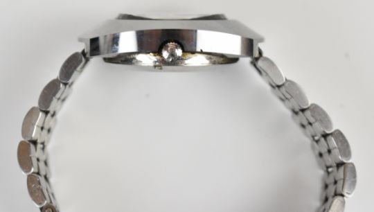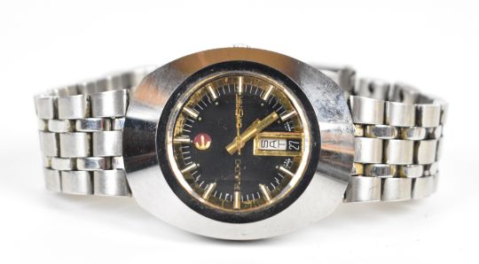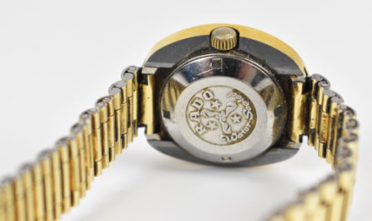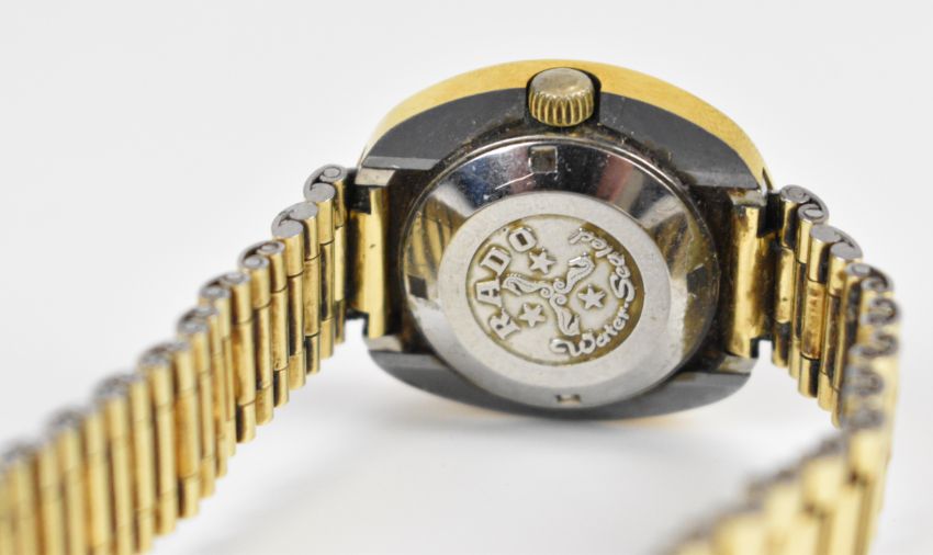 Two Rado wristwatches Diastar with day and date aperture, gold hands, black dial and stainless steel case, on stainless steel bracelet, case diameter 35mm, and Diastar Magic with date aperture, two-tone hands and hour markers, gold dial and gold plated case, on gold plated bracelet, with spare bracelet.