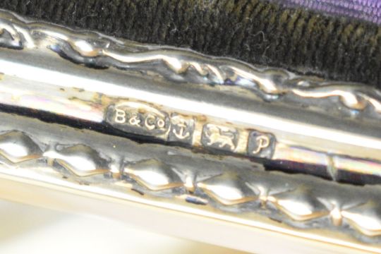 Four hallmarked silver photograph frames, the larger two to suit 6 x 4 inch photos, the smaller pair to suit 5 x 3 photos, various dates, all W I Broadway & Co
