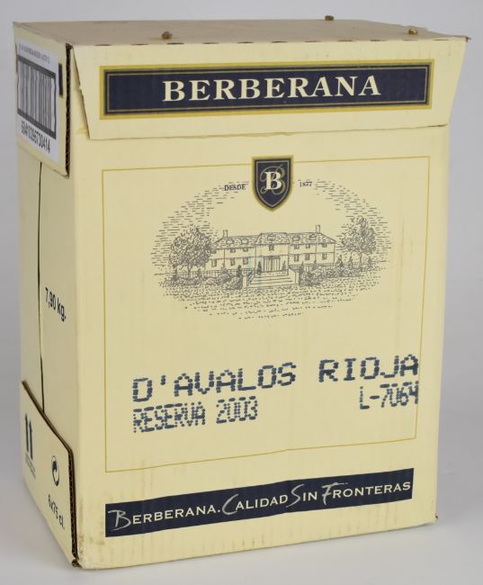 Six bottles of Berberana d' Avalos Rioja red wine, Reserva 2003, 13% vol, 75cl. PLEASE NOTE ALL ALCOHOL & TOBACCO ITEMS ARE SUBJECT TO OVER 18 CHECK ON COLLECTION OR DELIVERY