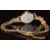 Technos gold plated ladies wristwatch with blued hands and Arabic numerals and silver dial, on 9ct gold bracelet, case diameter 15mm, 10.9g.