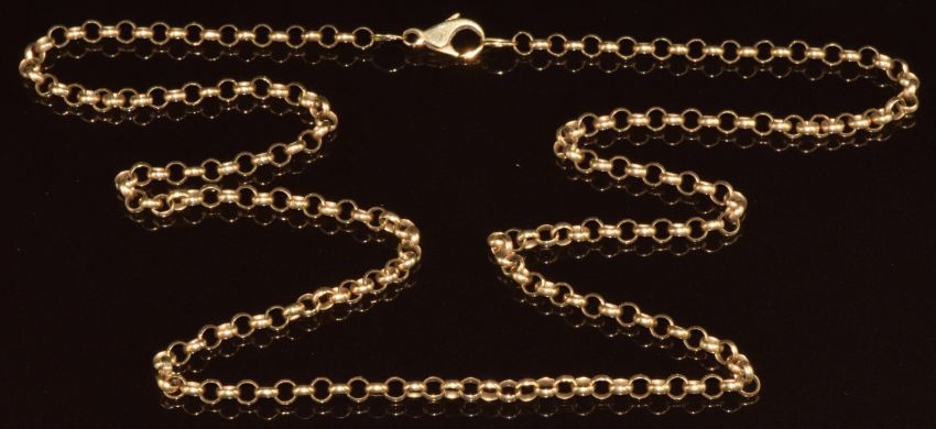 A 9ct gold necklace made up of circular links, 10g, 55cm