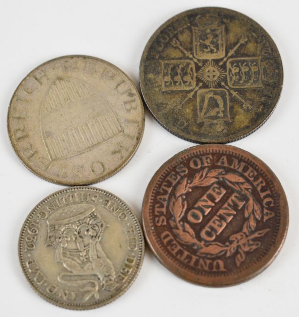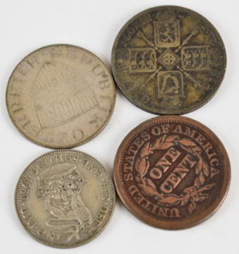 Approximately 227g of pre-1947 British silver coinage from half crown down to 3d, together with a small collection of world coinage including 19th century American, German and Commonwealth