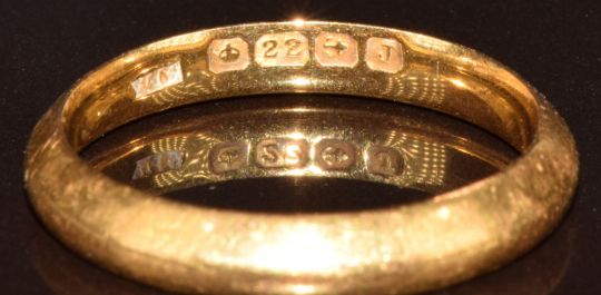 A 22ct gold wedding band / ring, 3.2g, size J