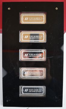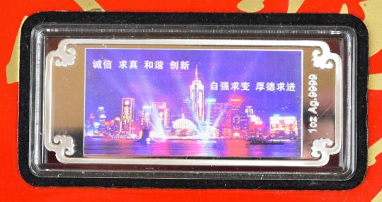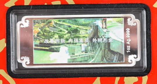Cased set of five Chinese .9999 silver ingots marked for the China Huadin Corporation verso, length of each ingot 7cm, in original presentation case
