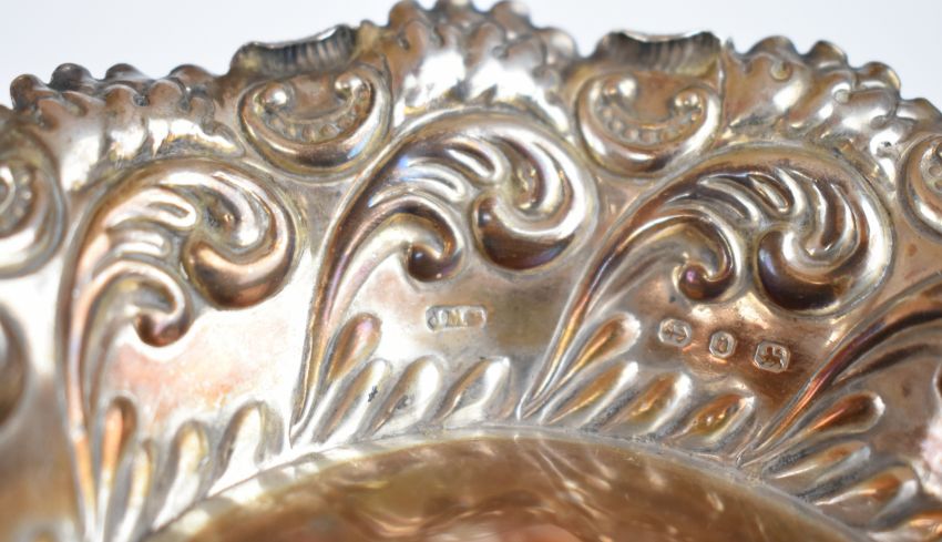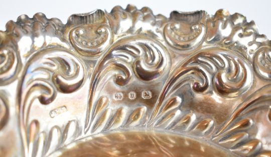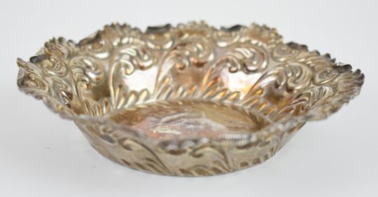 Victorian hallmarked silver bon bon dish with embossed decoration, Birmingham 1895, maker John Millward Banks, diameter 12.5cm, weight 47g