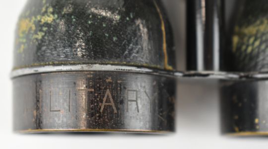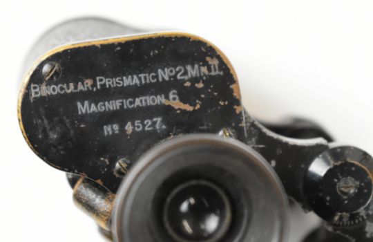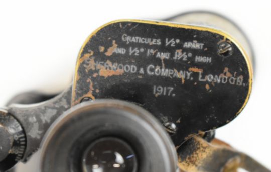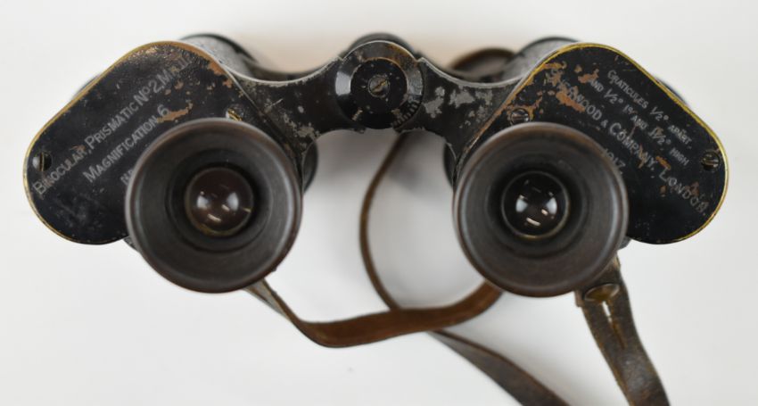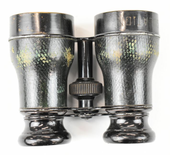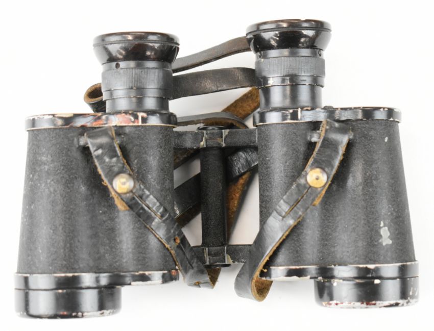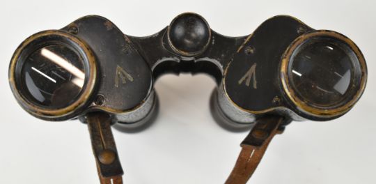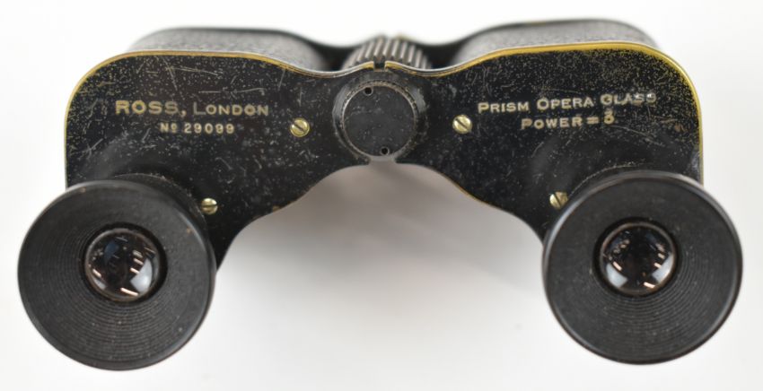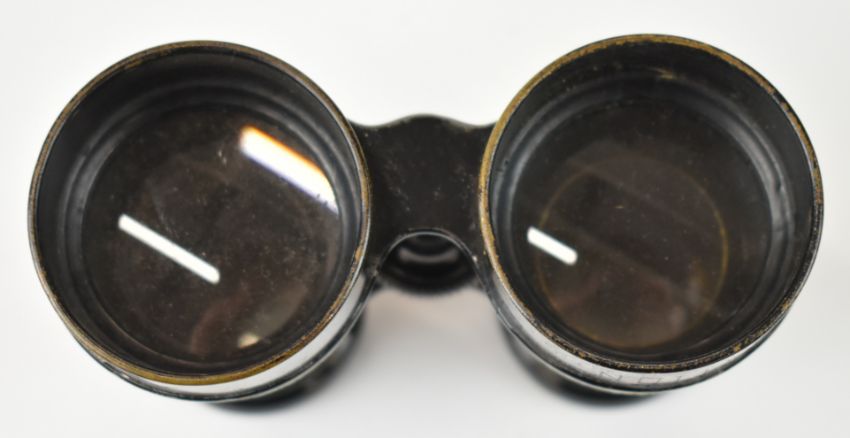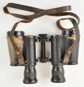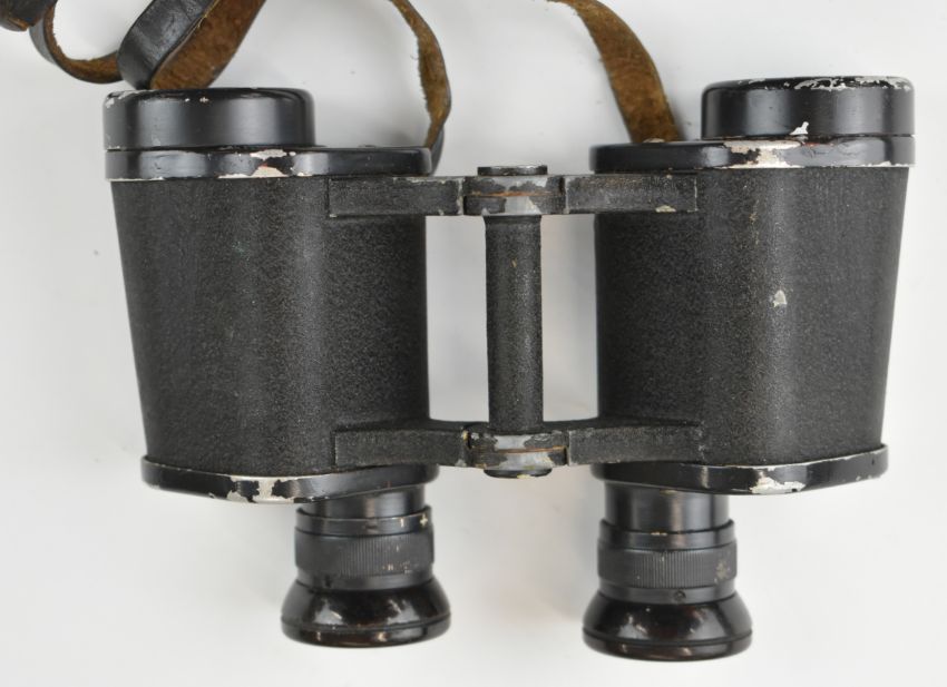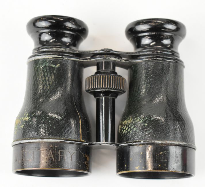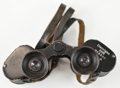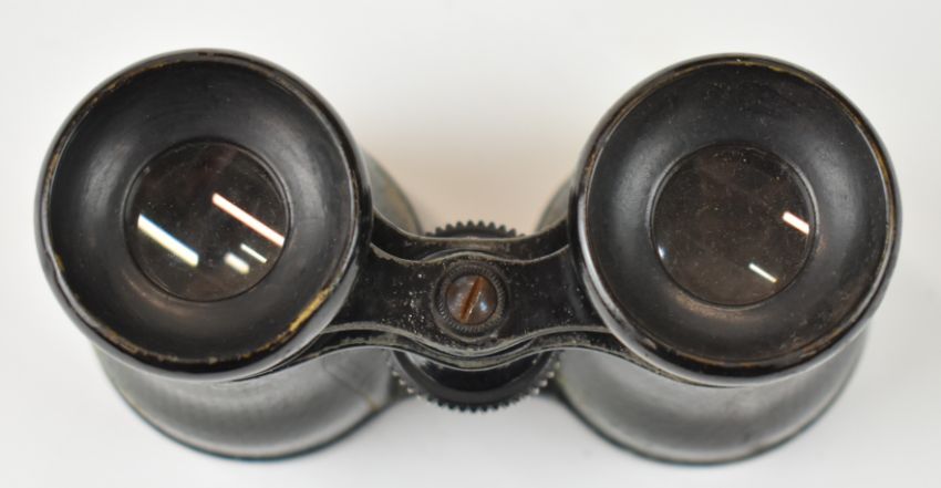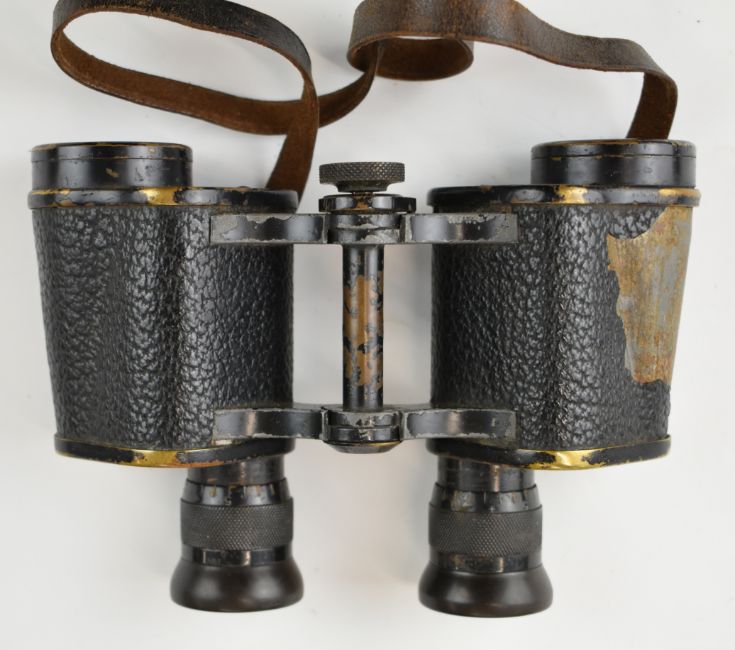 Pair of Voigtlander 6x30 German WW2 era Dienstglas binoculars with makers code ddx, 1917 Sherwood military binoculars, in leather case dated 1916, Broadhurst Clarkson & Co. Ltd three draw brass and leather telescope, pair of binoculars marked Military and a pair of Ross opera glasses