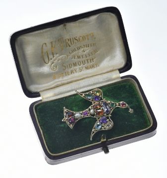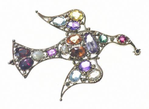 Victorian brooch in the form of a bird set with garnets, paste, spinel, split pearl, etc, 3.6 x 3cm