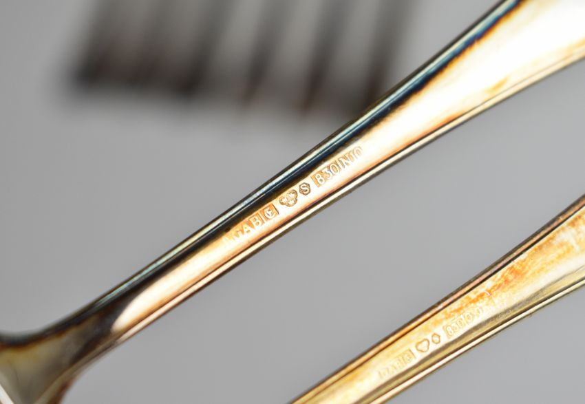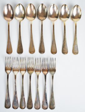 Swedish 830 grade silver dessert cutlery set comprising seven each of forks and spoons, length 16cm, weight 394g