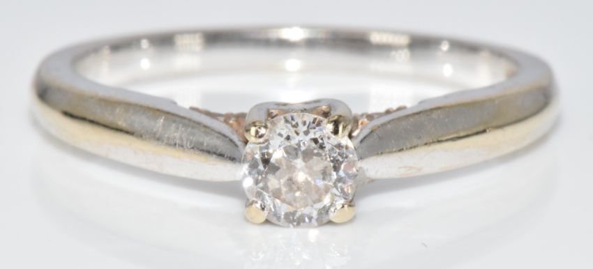 An 18ct white gold ring set with a 0.4ct round brilliant cut diamond, in original box, 3.3g, size N