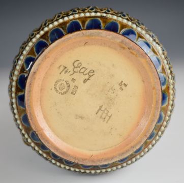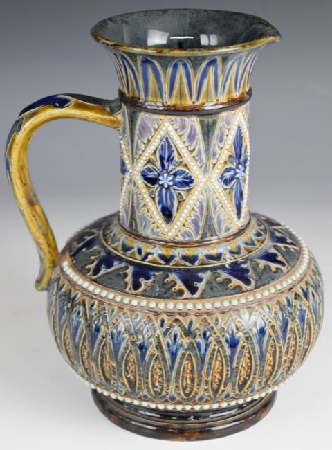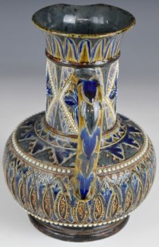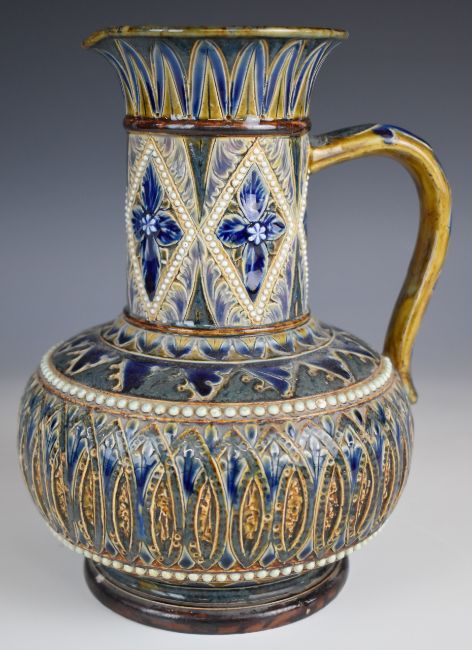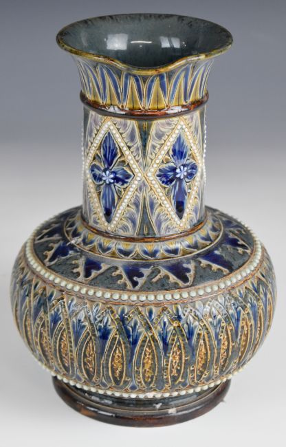 Doulton Lambeth pedestal ewer with impressed potter's marks to base, H21cm