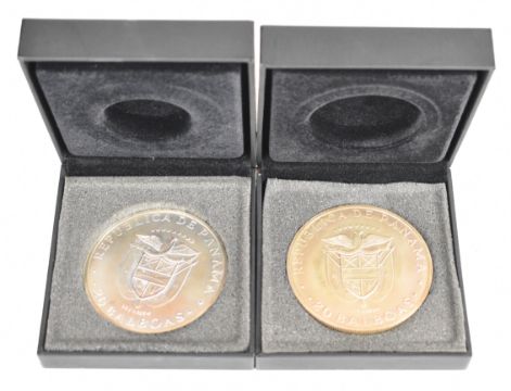 Two Panama 20 Balboas 4.5oz 925/1000 silver coins