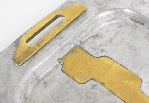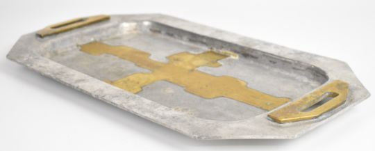 David Marshall (Scottish Brutalist artist) aluminium and brass tray, length 44cm