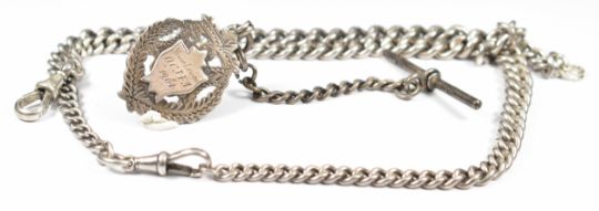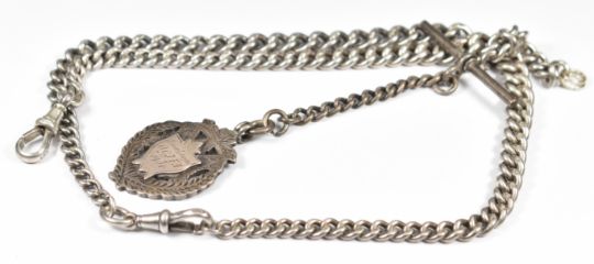 Two hallmarked silver Alberts / watch chains with separate T bar and fob, 67.2g