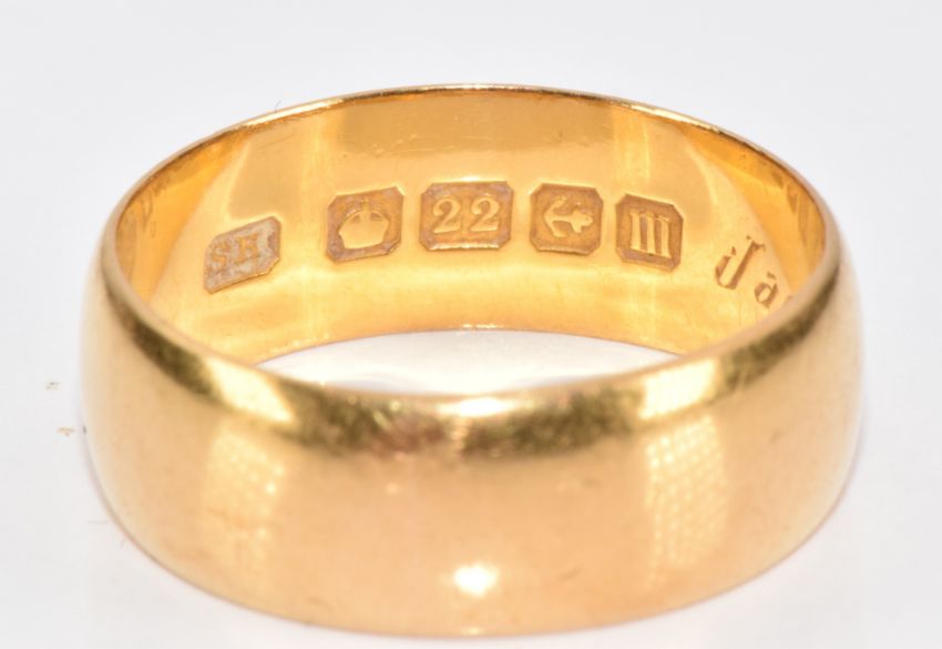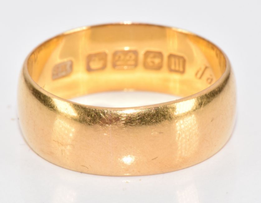 A 22ct gold wedding band / ring, Birmingham 1911, 5.7g, size N