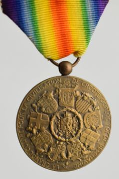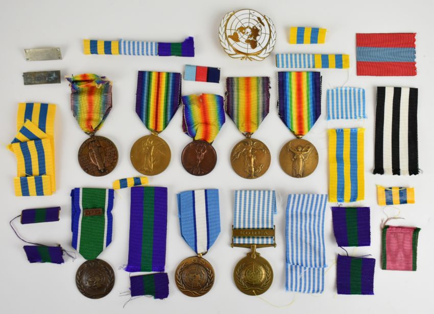 Eight medals comprising five Victory Medals for various countries comprising Great Britain, Belgium, USA / America, Italy and France and three UN Medals comprising UN Korea, UN Cyprus and UN Congo with Congo Clasp, together with various ribbons and bars